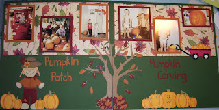 I think I'm going to use this for Tobias' first Halloween pictures. I haven't decided yet, as I'm working on another one! I love Halloween! This needs just a few finishing touches, cob webs and the like. I tried to recreate our pumpkin man so that I can take a picture of Tobias with his first pumpkin man! I didn't do him justice tho. The word Boo! is actually very glittery like, but for some reason you can't see it well. For page tabs I've used 2009 and a pumpkin. I of course need to make friends with the dang ink pads...I am so messy with it! But if you think it's messy in the book you should see my arms!!!